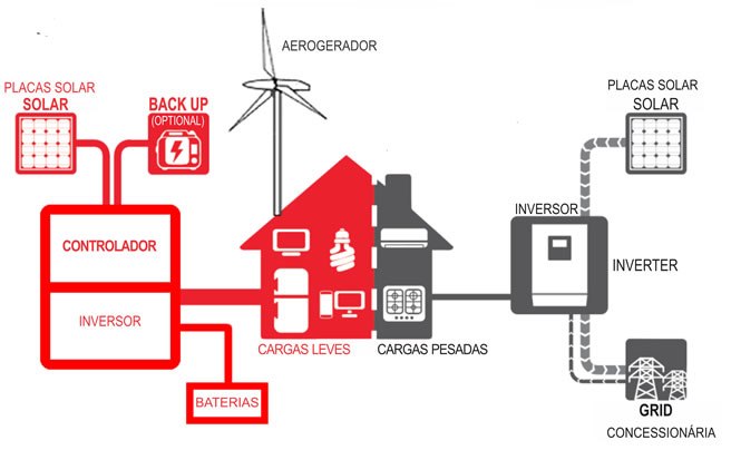 - Sistemas Híbridos: Combinam diferentes fontes de energia, como a solar e a eólica, e também utilizam baterias. São uma solução mais flexível, mas também mais cara .