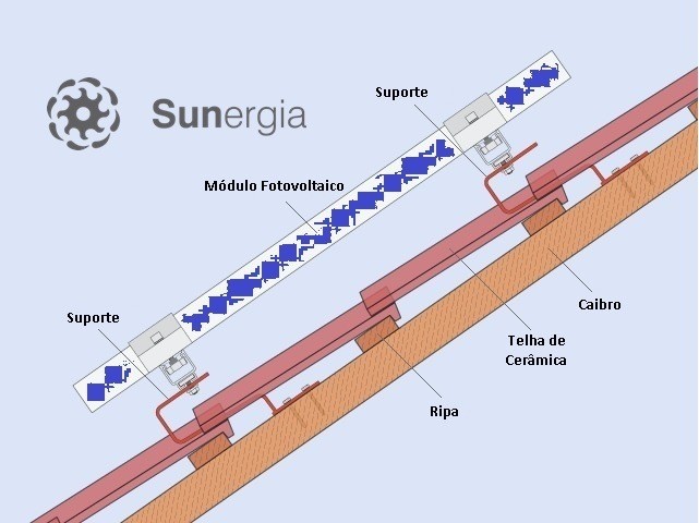 Em telhados de barro, as telhas são removidas nos lugares certos, de acordo com o layout, e os “suportes” são aparafusados nestes pontos provendo a base da fixação do sistema. Em telhados de metais, a instalação é mais simples e o suporte é aparafusado através da própria telha metálica provendo segurança e proteção contra infiltrações.