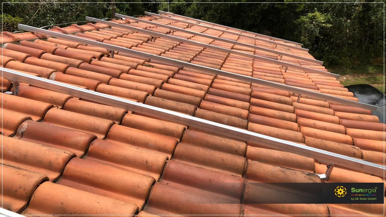 Sistemas de suporte para fixação de placas solares podem ser desenhados para serem fixados com ganchos em telhados de barro ou até mesmo inclinados sobre uma laje para garantir uma inclinação ideal para os painéis.