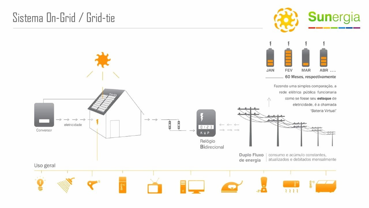Esse sistema permite que a energia excedente gerada pela unidade consumidora com micro ou mini geração seja injetada na rede da distribuidora, a qual funcionará como uma bateria, armazenando esse excedente. Quando a energia injetada na rede for maior que a consumida, o consumidor receberá um crédito em energia (kWh) a ser utilizado para abater o consumo em outro posto tarifário (para consumidores com tarifa horária) ou na fatura dos meses subsequentes.