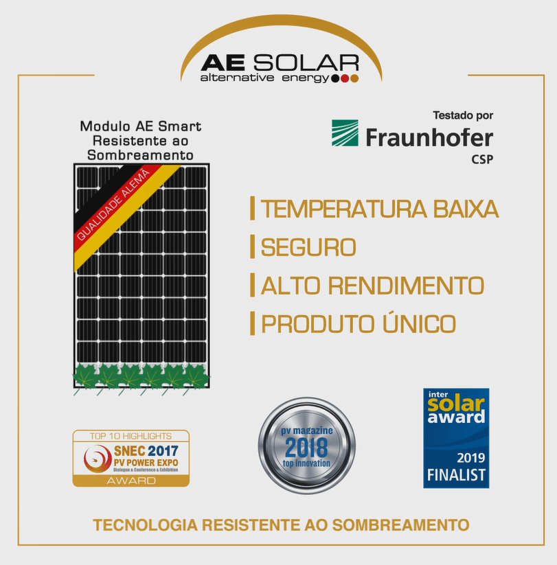 O MÓDULO AE SOLAR SMART com tecnologia HOT-SPOT FREE possui uma temperatura de operação mais baixa , que não apenas elimina uma causa potencial para a degradação da cobertura, mas também evita danos a células baseadas em silício.
