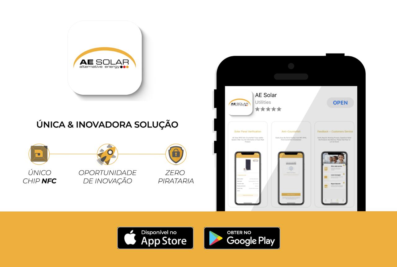 A utilização requer compatibilidade com NFC, conexão com a internet e acesso à câmera do telefone. O aplicativo AE Solar é gratuito e está disponível para smartphones com sistema operacional Android e IOS.